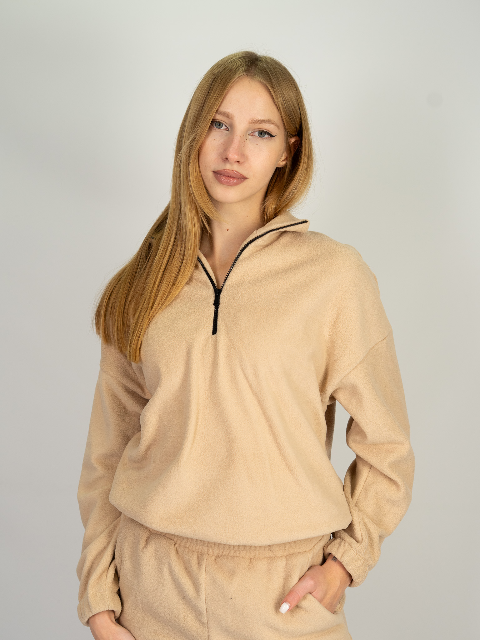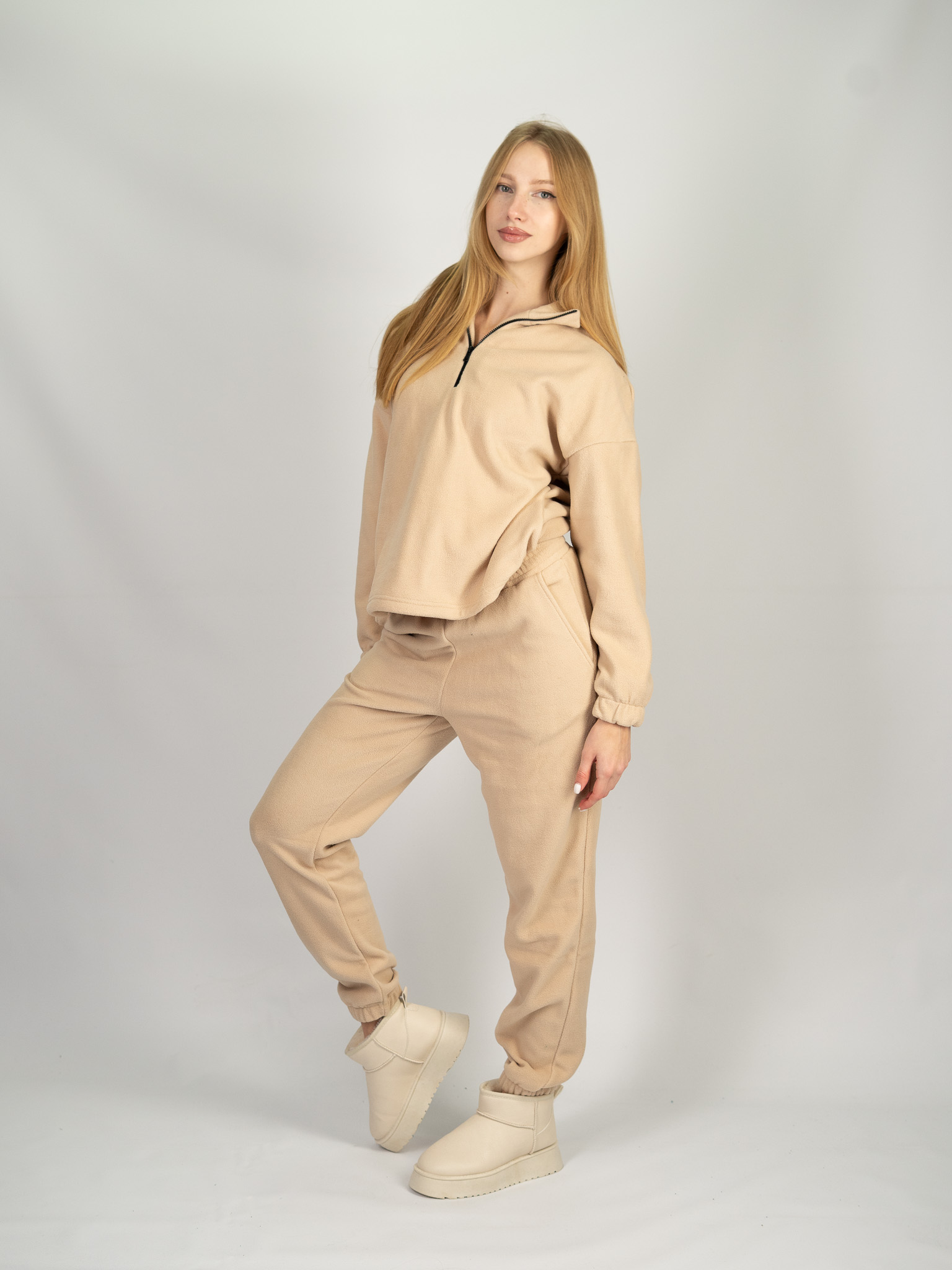 Забудьте про холод і дискомфорт! Наш жіночий костюм з дабл флісу — це маст-хев зимового гардеробу. Особливість цього комплекту полягає у використанні тканини “Double Fleece” — вона пухнаста, м’яка та приємна на дотик з обох боків (і зовні, і до тіла). Це створює неймовірне відчуття затишку, наче ви загорнуті у теплий плед, де б ви не були.